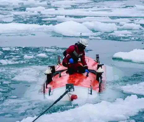 2025年9月,蛙人在北极密集冰区回收“奋斗者”号。