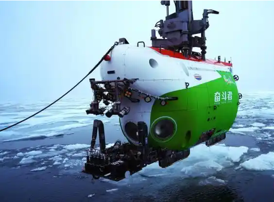 2025年9月,“奋斗者”号在北极密集冰区被起吊出水。